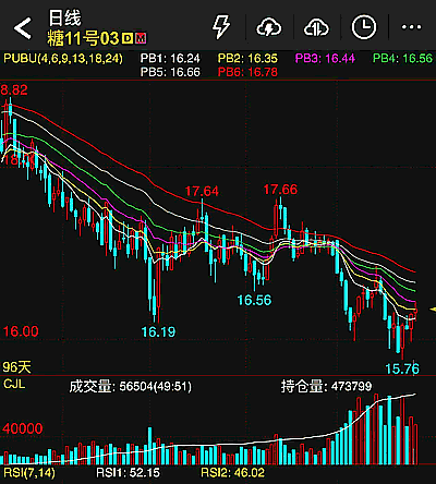 日線圖上可以看到,本周原糖期貨主力合約在觸及15.76美分一線低點(diǎn)后出現(xiàn)反彈,當(dāng)前回升至16.35美分附近,重新站上短期均線密集區(qū),但面對(duì)上方16.60—16.80美分的壓力帶(PB5—PB6區(qū)域),仍需要更多動(dòng)能確認(rèn)突破。