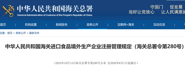 (2025年10月14日海關(guān)總署令第280號公布 自2026年6月1日起施行)